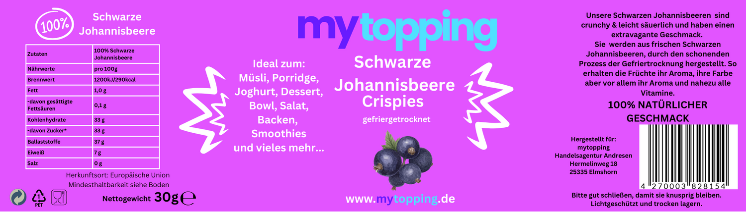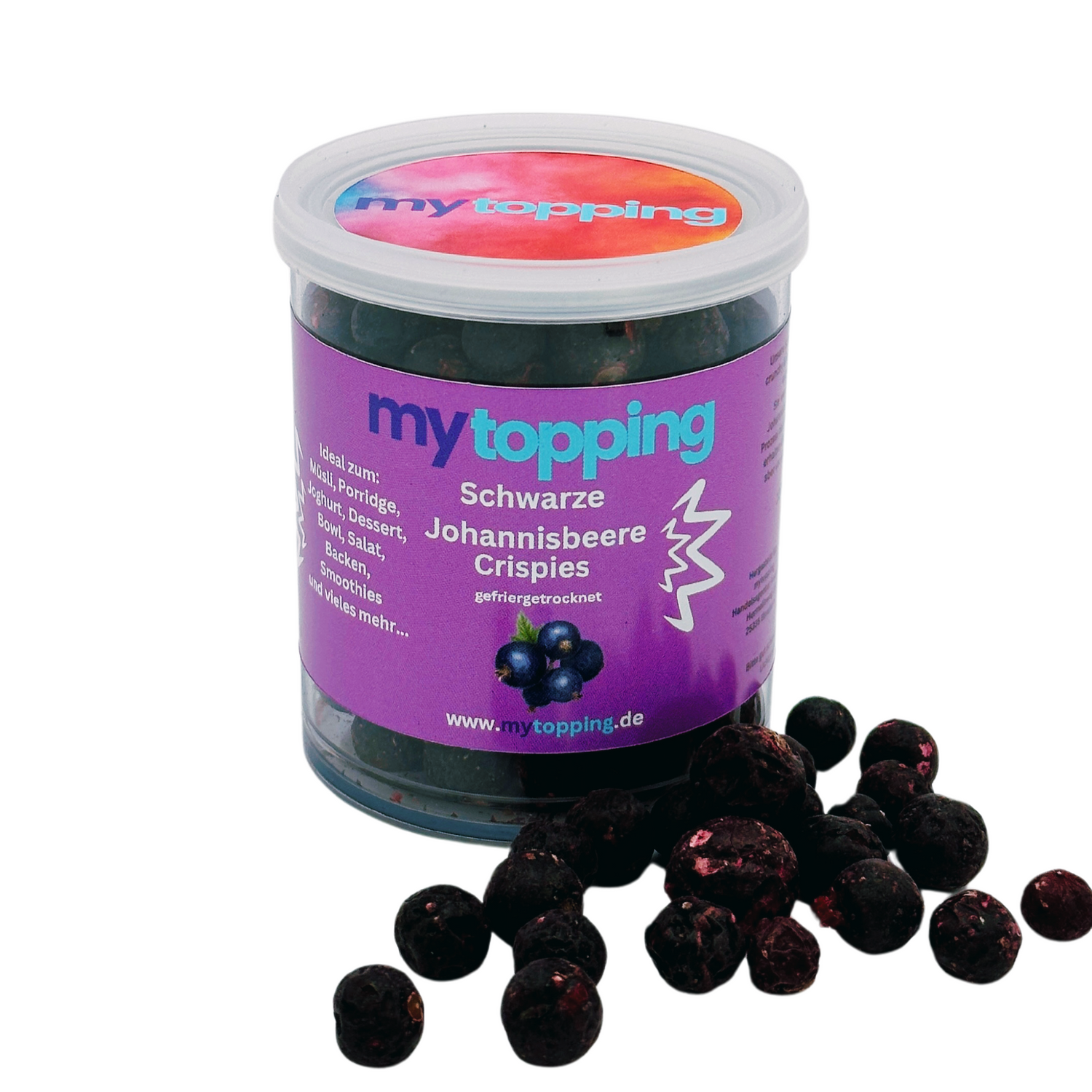 Schwarze Johannisbeere Crispies, gefriergetrocknete vitaminreiche Schwarze Johannisbeere 100% Natur für Müsli, Porridge, Joghurt, Dessert, Bowl, Backen, Smoothies, Topping