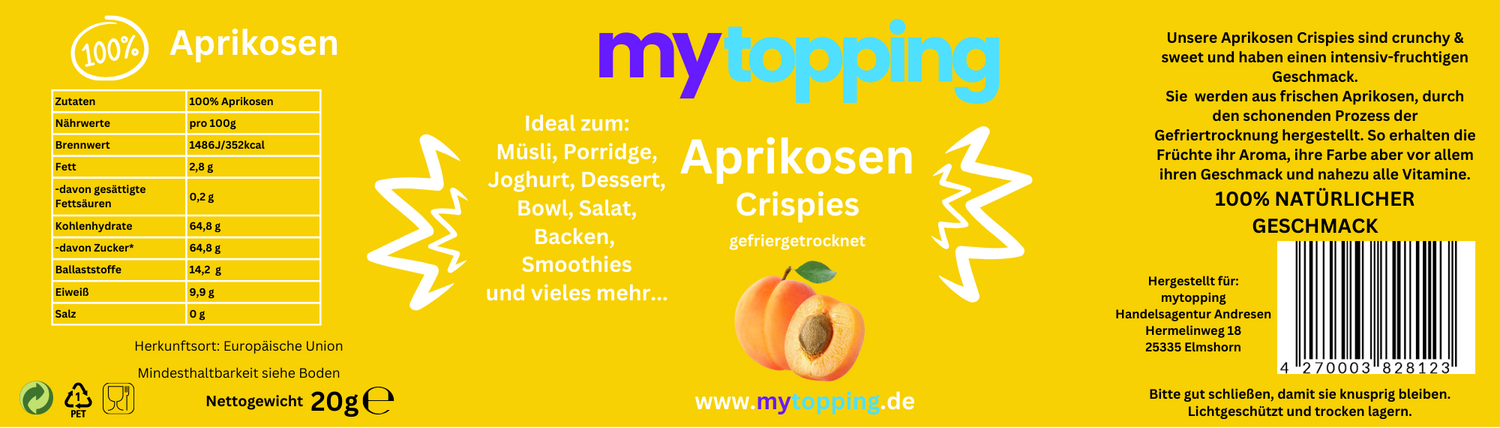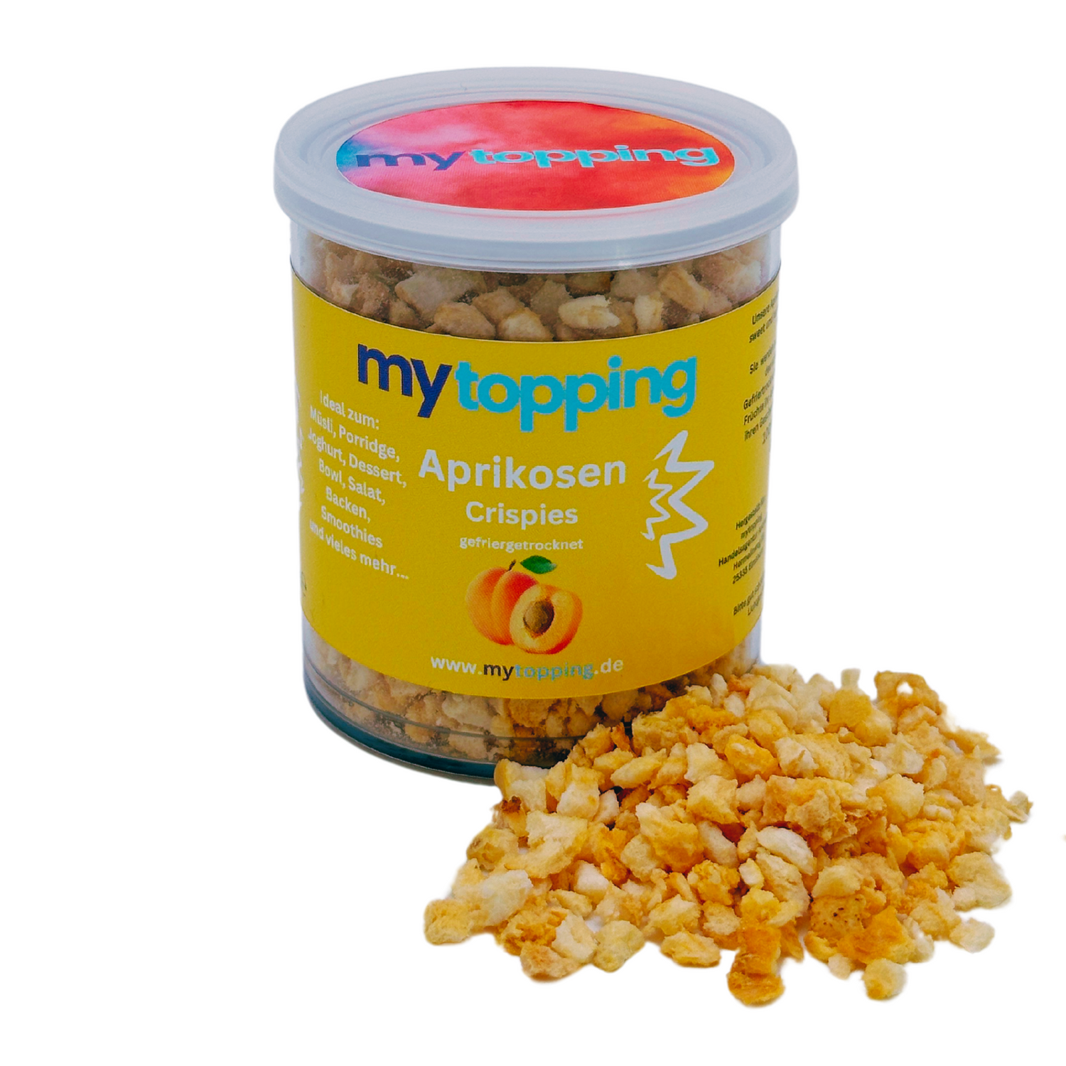 Aprikosen Crispies , gefriergetrocknete vitaminreiche Aprikosen Würfel 100% Natur für Müsli, Porridge, Joghurt, Dessert, Bowl, Backen, Smoothies, Topping